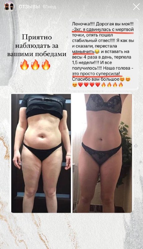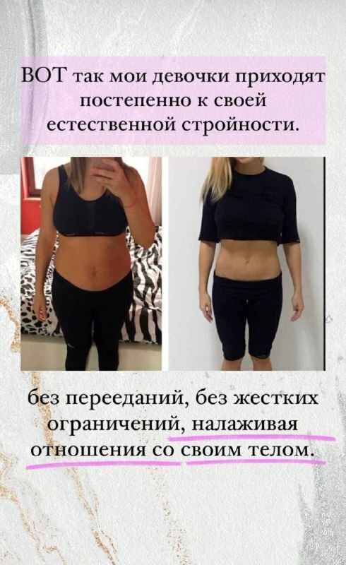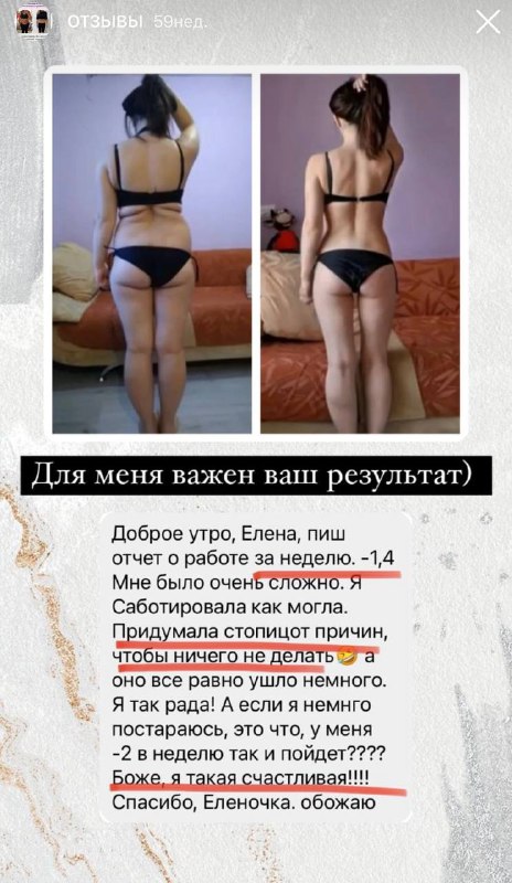 Всем привет ! С Еленой познакомилась через инста , хотела только решить проблему веса 🙈 . Но мы с Леной помимо этого проработали ещё много чего во мне ! Так же обращалась к Елене довольно часто в по другим вопросам где Лена всегда давала мне точные ответы и всегда находила для меня время !!! Хотя мне иногда нужно было вот прям сейчас !!!! Лена благодарю тебя за твоё терпение и отзывчивость !